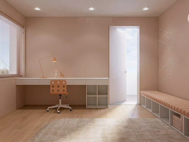 Thiết kế tập trung vào sự giao tiếp giữa ánh sáng và cây xanh, ngôi nhà như một bức tranh qua lá cây. Đọc bài về biệt thự nhà xinh https://bietthunhaxinh.com/